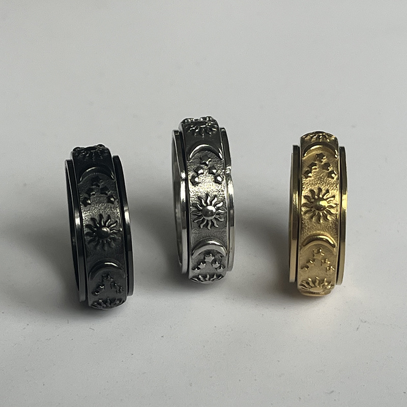 Stars Moon Sun Titanium Stainless Steel Rotatable Rings