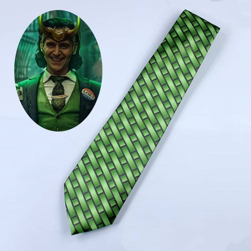 Movie TV Loki Cosplay Green Stripe Necktie