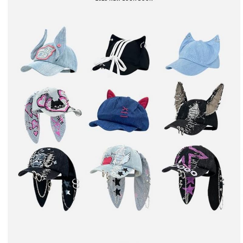 Korean Fashion y2k Long Rabbit Ear Hip Hop Baseball Cap