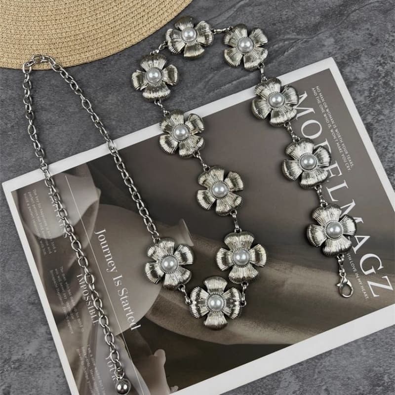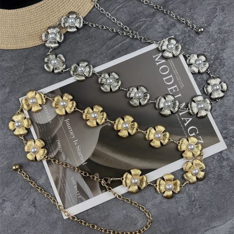 Women Flower Shaped Metal Waist Chain Belt