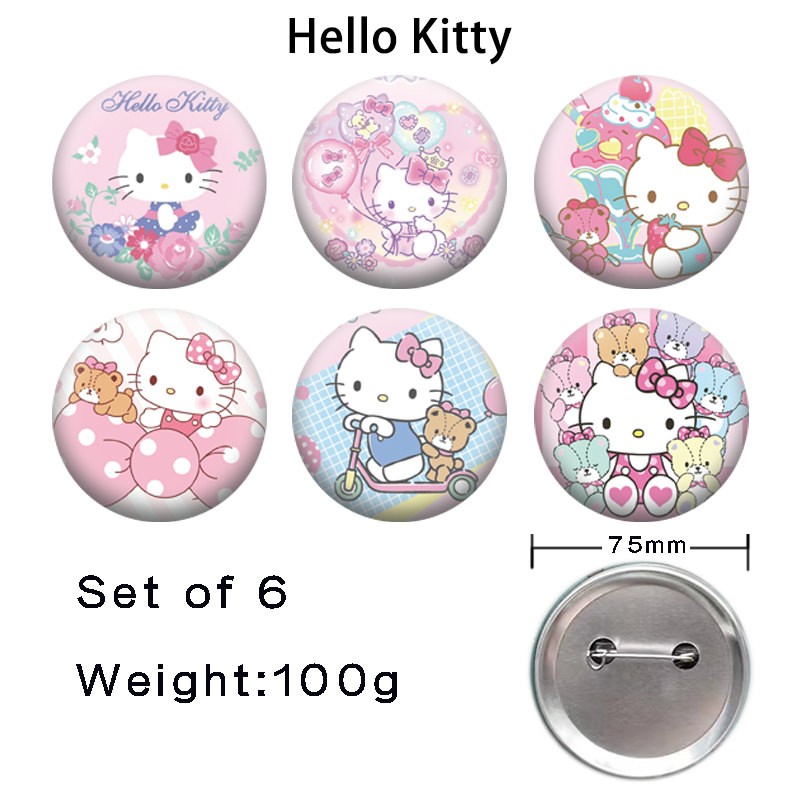 Your Position: Home > Anime category > Hello Kitty > 75MM Hello Kitty anime tinplate brooch pins set(6pcs a set)