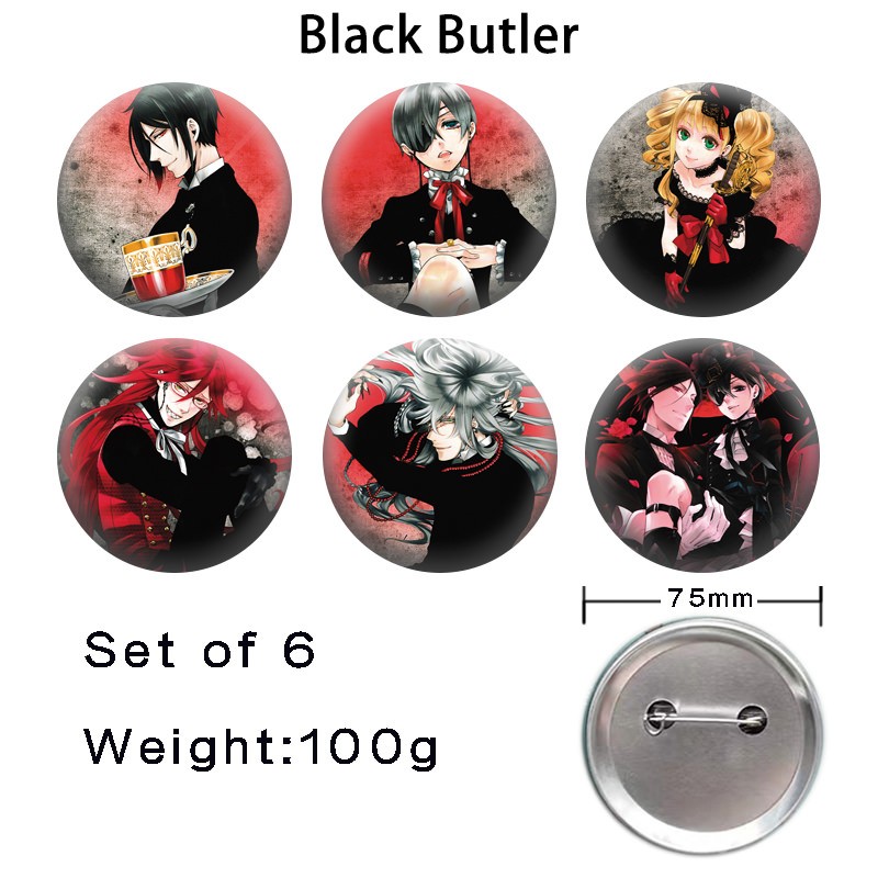 75MM Black Clover anime tinplate brooch pins set(6pcs a set)