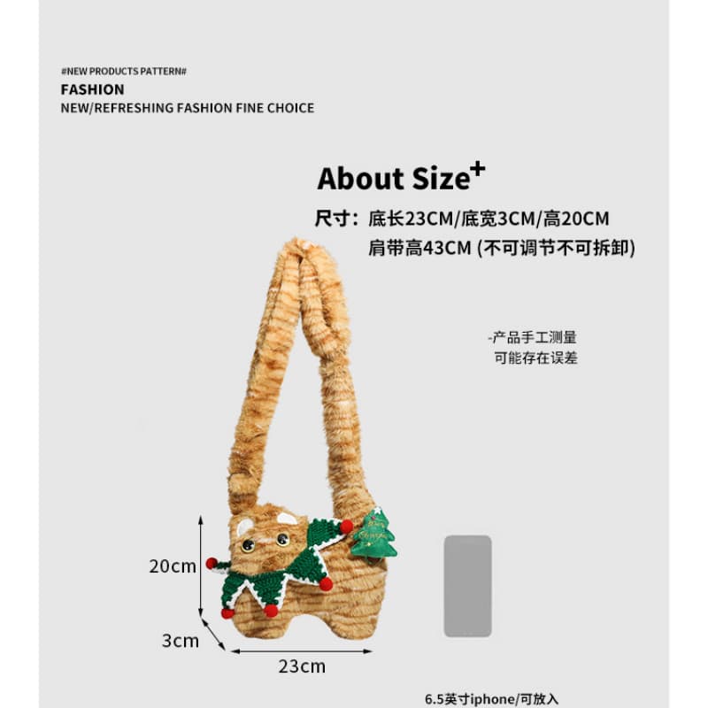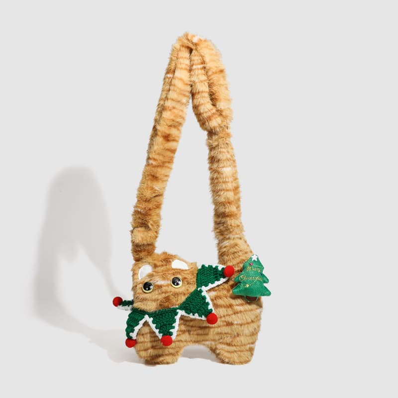 Lovely Christmas Cat plush Crossbody Shoulder Bag