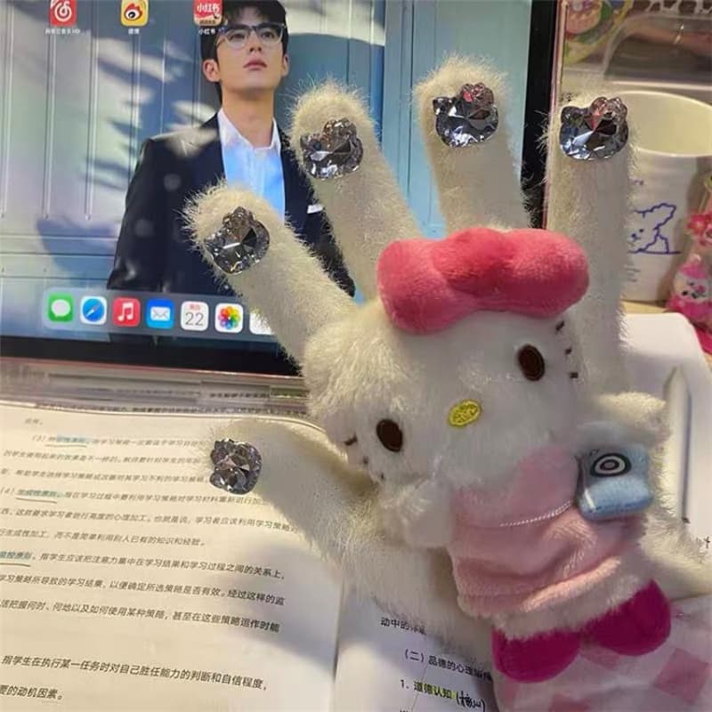 Your Position: Home > Anime category > Hello Kitty > Hello Kitty Diamond Plush Gloves