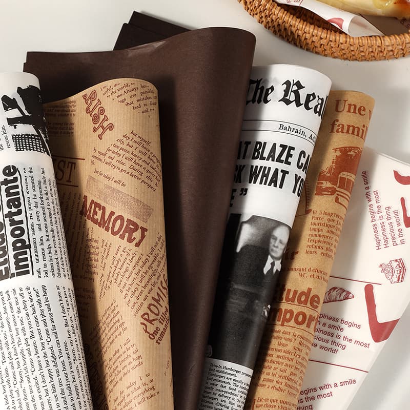 200pcs Oil proof paper Newspaper Design Sandwich Food Wrapping Paper