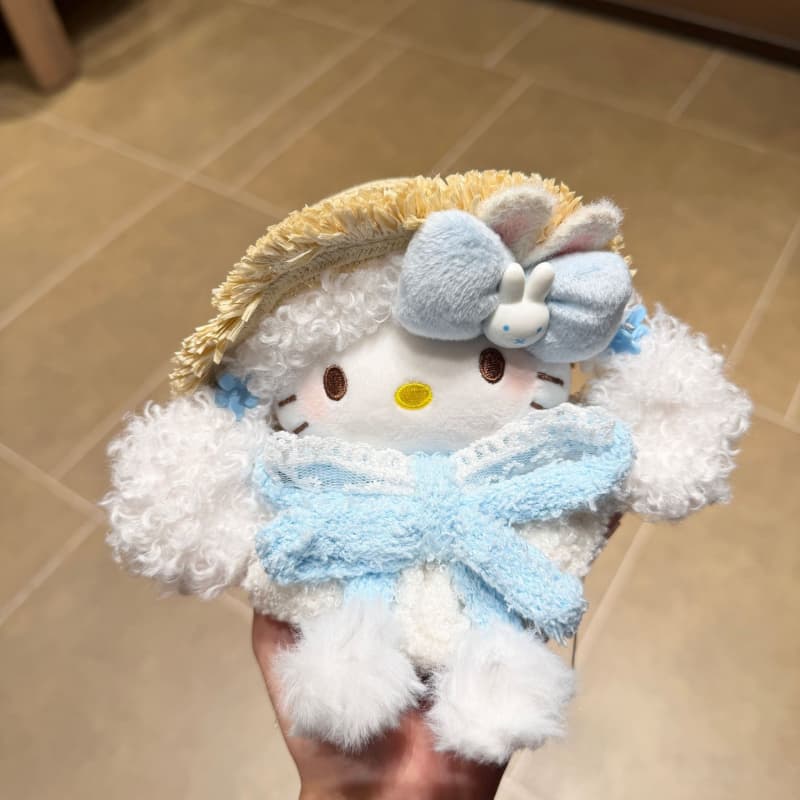 Your Position: Home > Anime category > Hello Kitty > 11cm Original Hello Kitty Straw Hat Furball Plush Doll