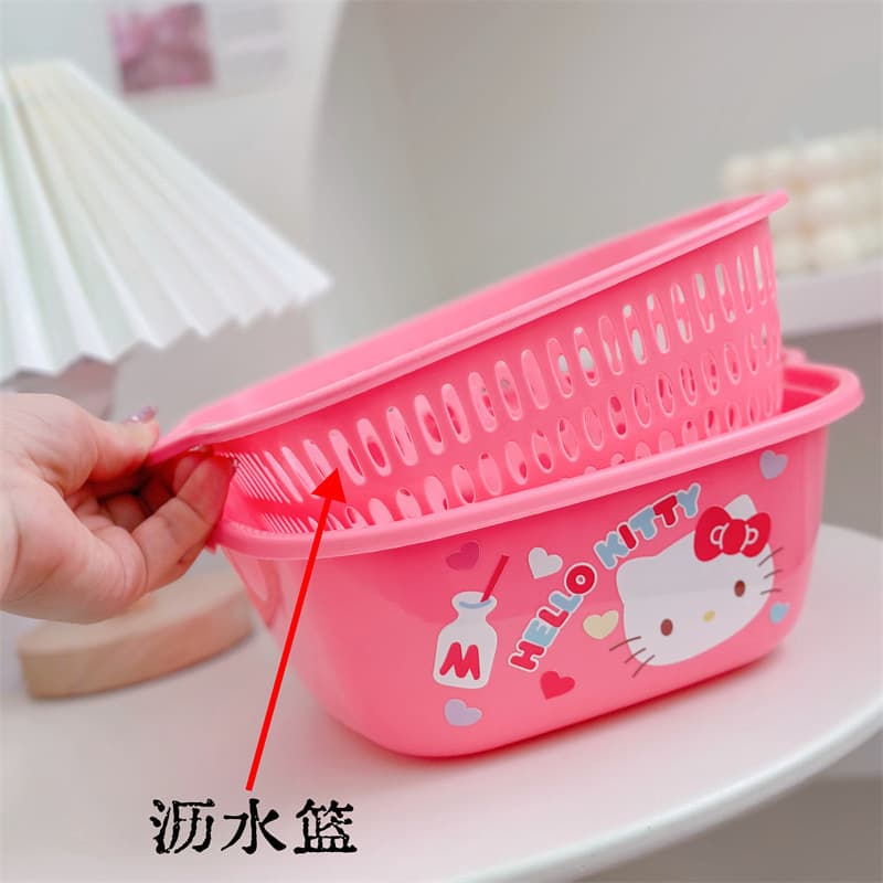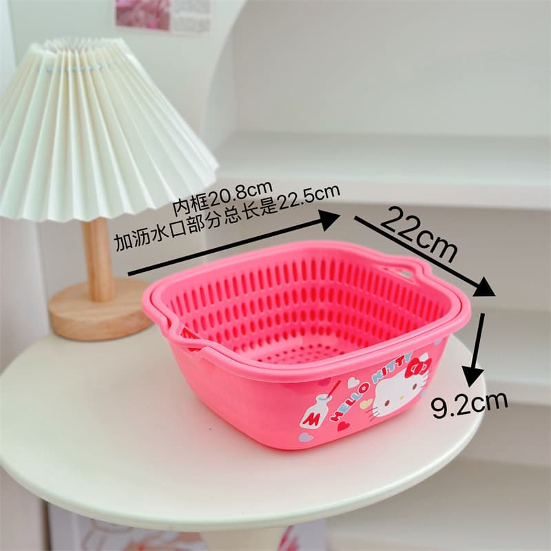 Sanrio Hello kitty Kuromi Double Drain Basket Washing Vegetable Basket