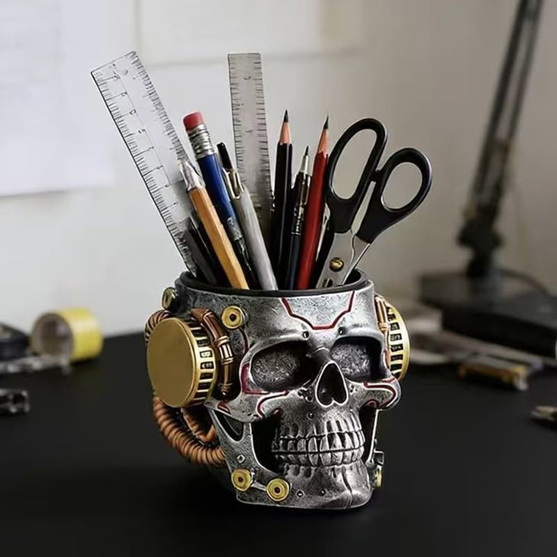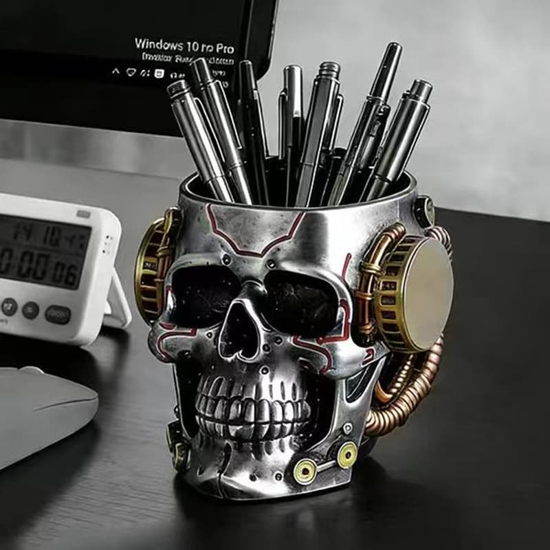 Your Position: Home > Anime category > Cyberpunk > Halloween Cyberpunk Machinery Skull Ornaments Pen Holder