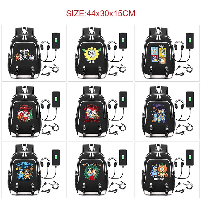 Bluey anime USB charging laptop backpack school bag