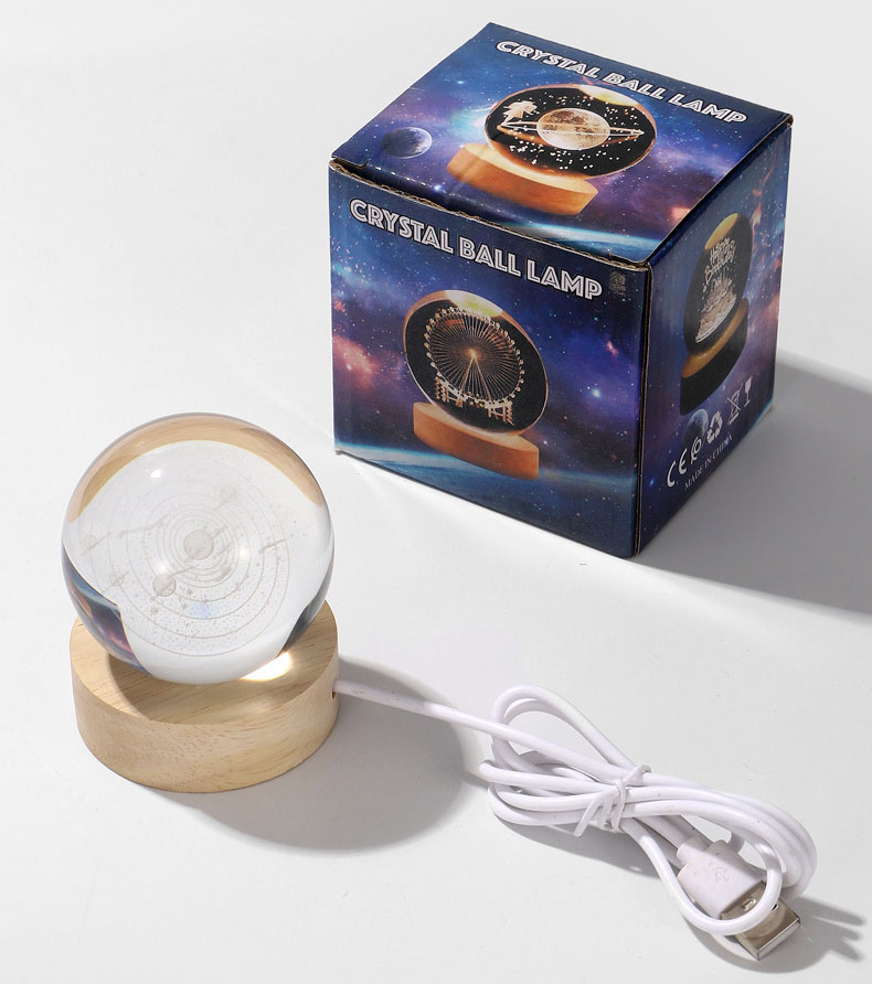 Your Position: Home > Anime category > Other Cartoon > 3D Crystal Ball Glass Ball Planet Earth Wooden Base Night Light