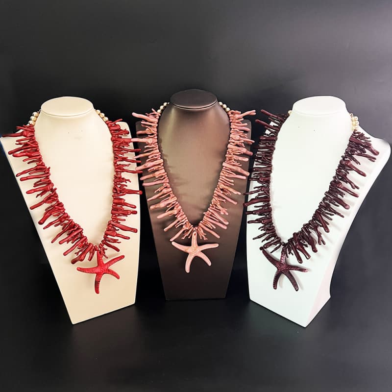 Exaggerated Ocean Inspired Coral Plastic Starfish Necklace