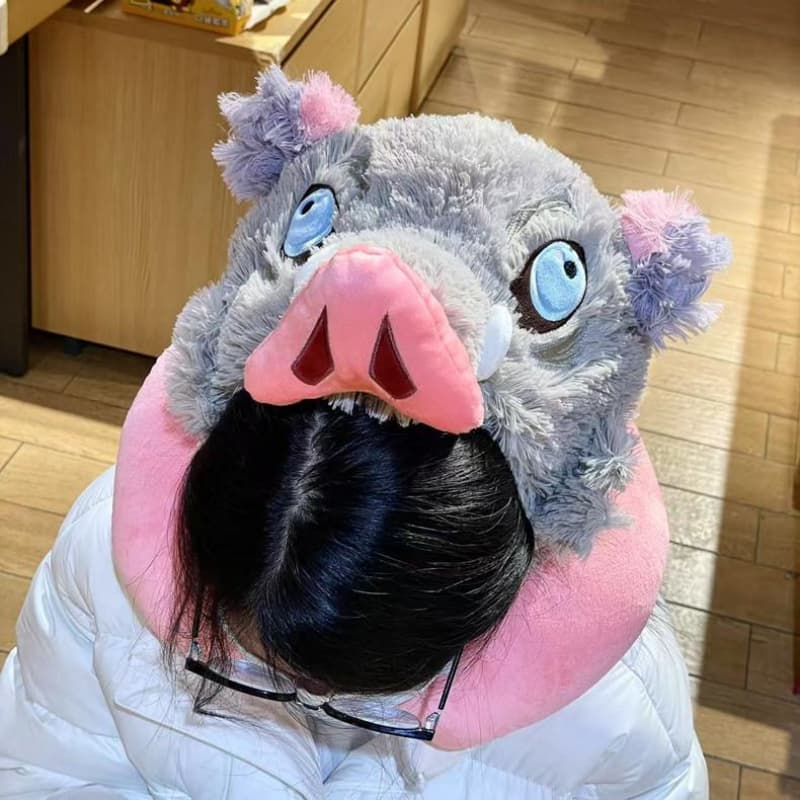 Your Position: Home > Anime category > Demon Slayer > Demon Slayer Hashibira Inosuke Wild Boar Head Plush Hat U-shaped Pillow