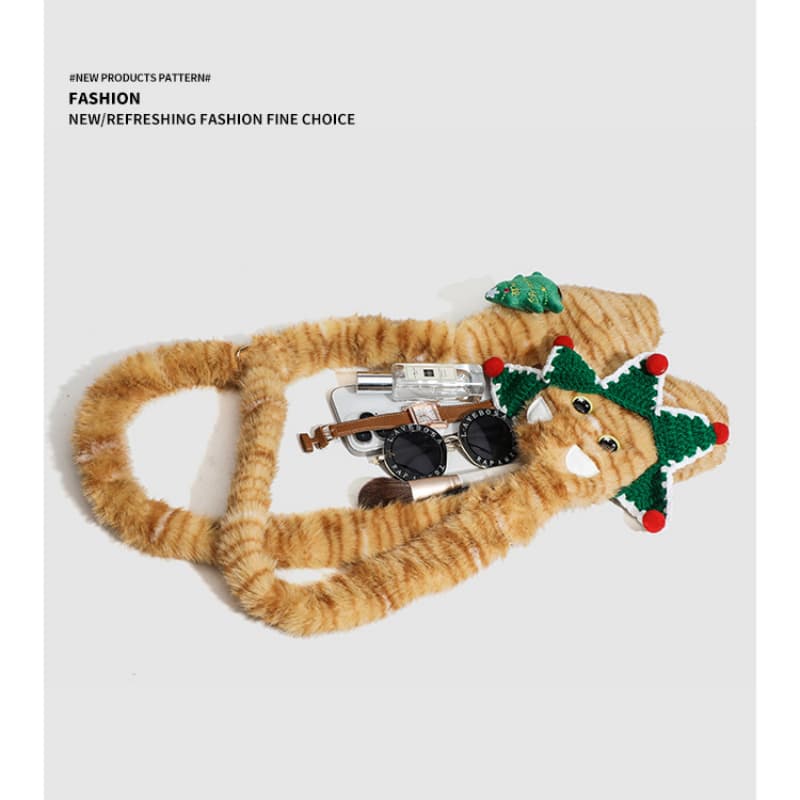 Lovely Christmas Cat plush Crossbody Shoulder Bag