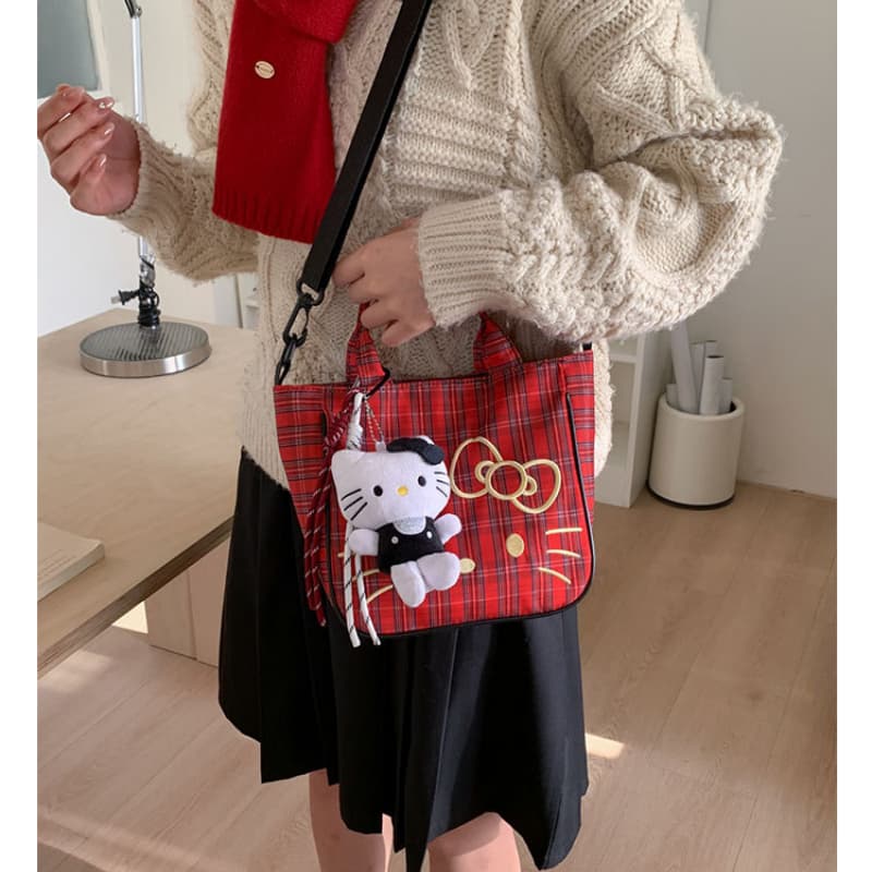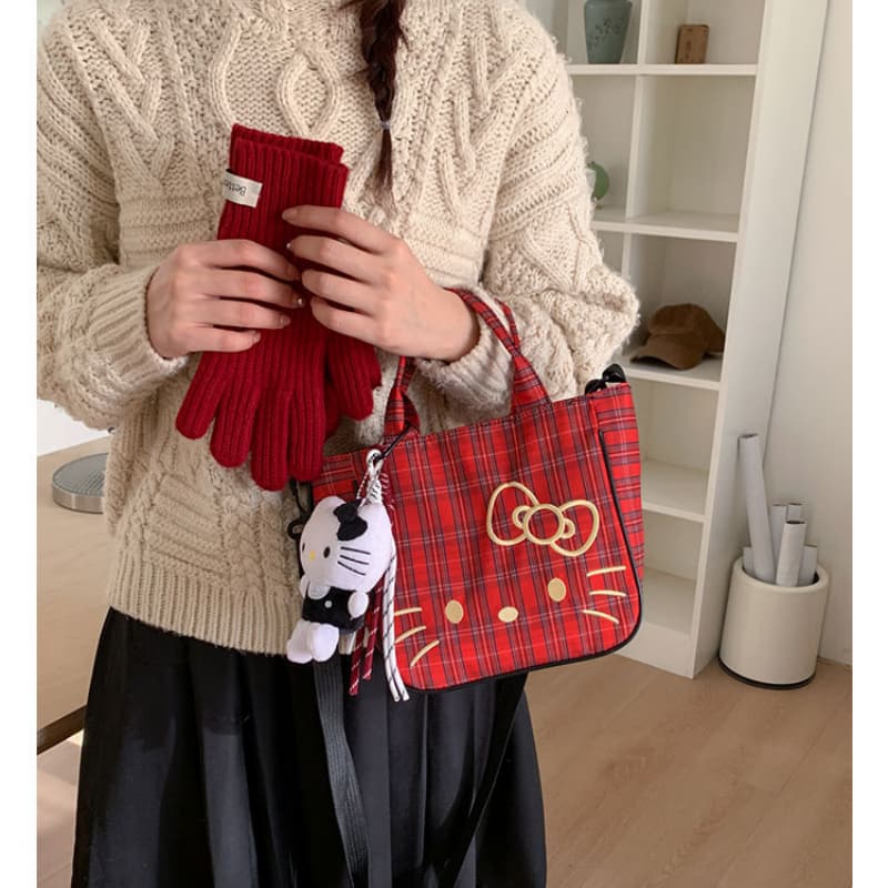 Hello Kitty anime grid ins handbag satchel shoulder bag