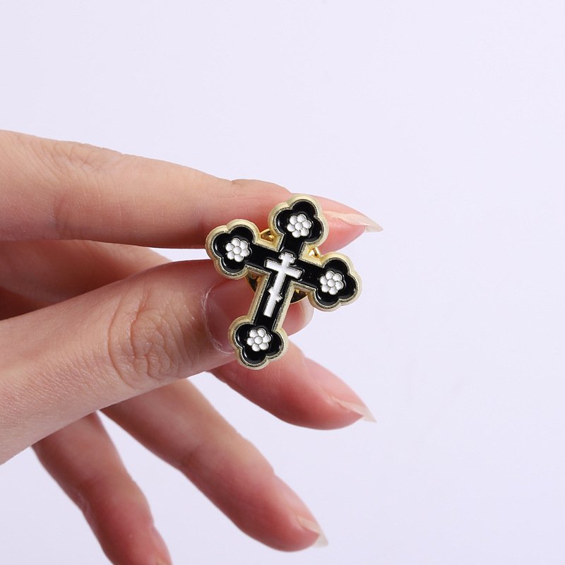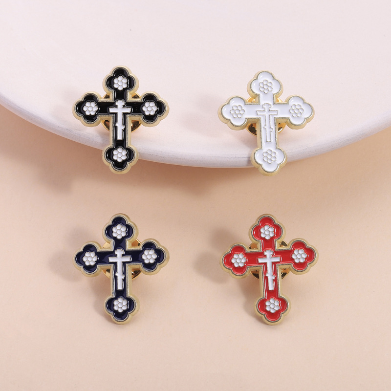 Classic Cross Enamel Pins Vintage Metal Brooches