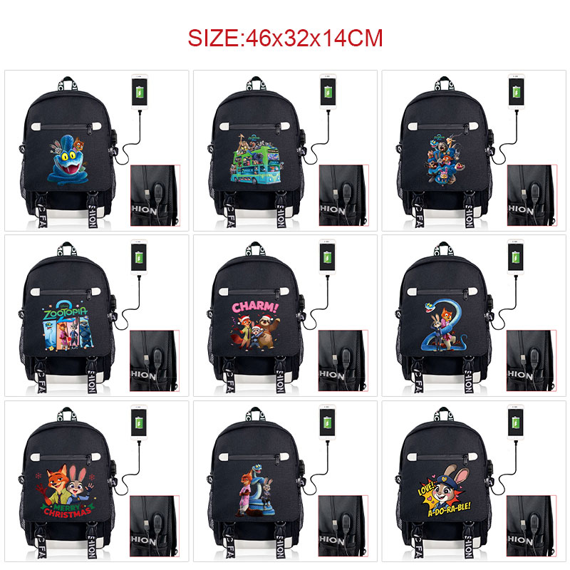 Zootopia USB charging laptop backpack school bags